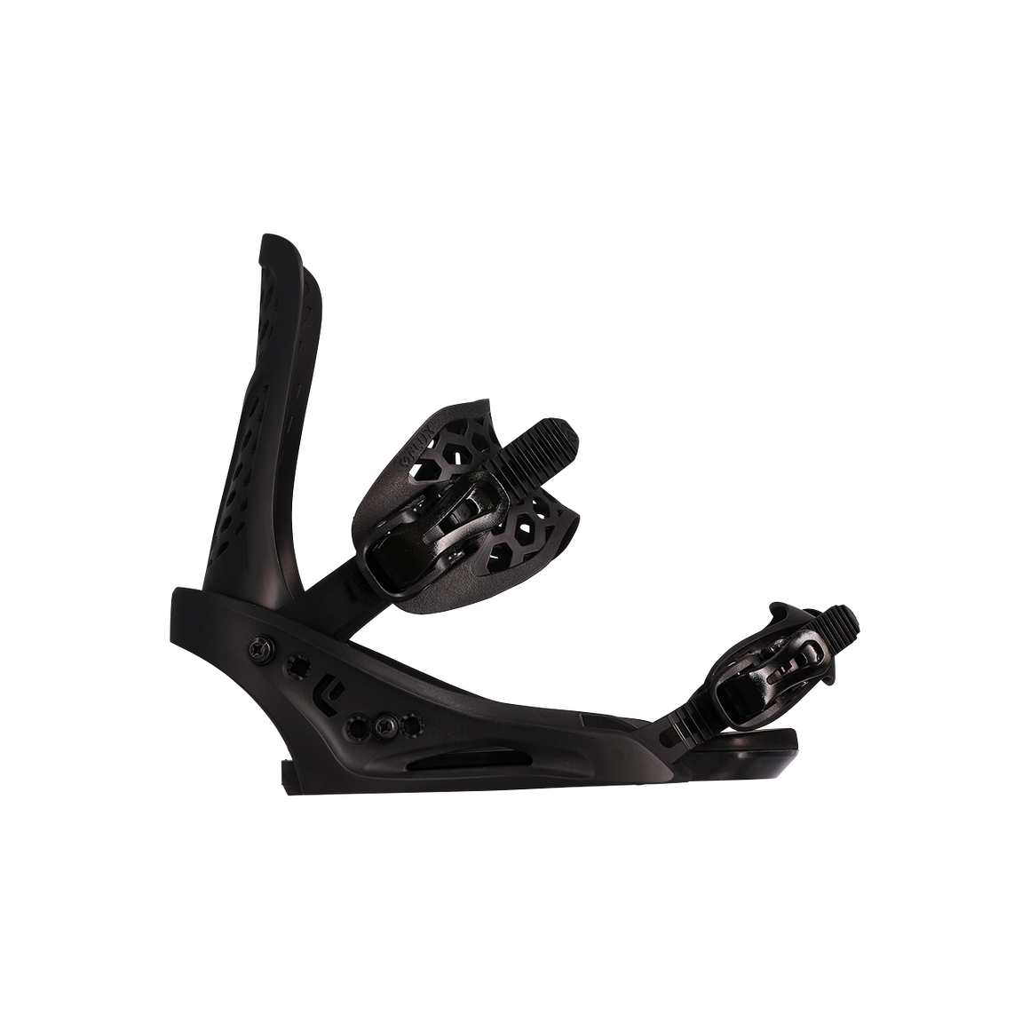 ヒールカップとハイバックの間にストラップベルトを取りつけることで、360°方向からブーツ包み込むシステム。これにより自然なホールド感と圧力の均一化を実現。