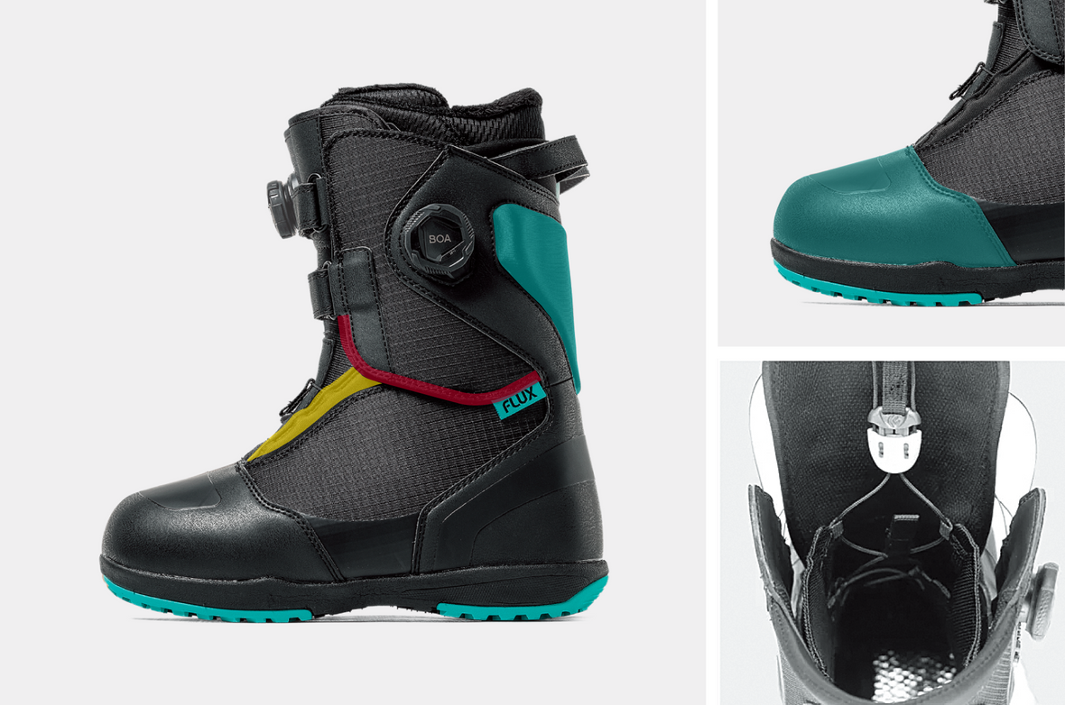 ベルトBOAのハイブリッドシステム。ベルトの締め分けでより繊細なフレックスの調整が可能。かかと浮き防止とビーズクッションの優れたフィット感が標準装備。アウターはバインディングとのマッチングを考慮したデザイン。ハイバックとの隙間を埋めるSIDEウィングでより繊細な動きに対応。甲に優しくフィットするFLEXIBLE LACE GUIDEが足元をやさしく、かつしっかりサポートします。