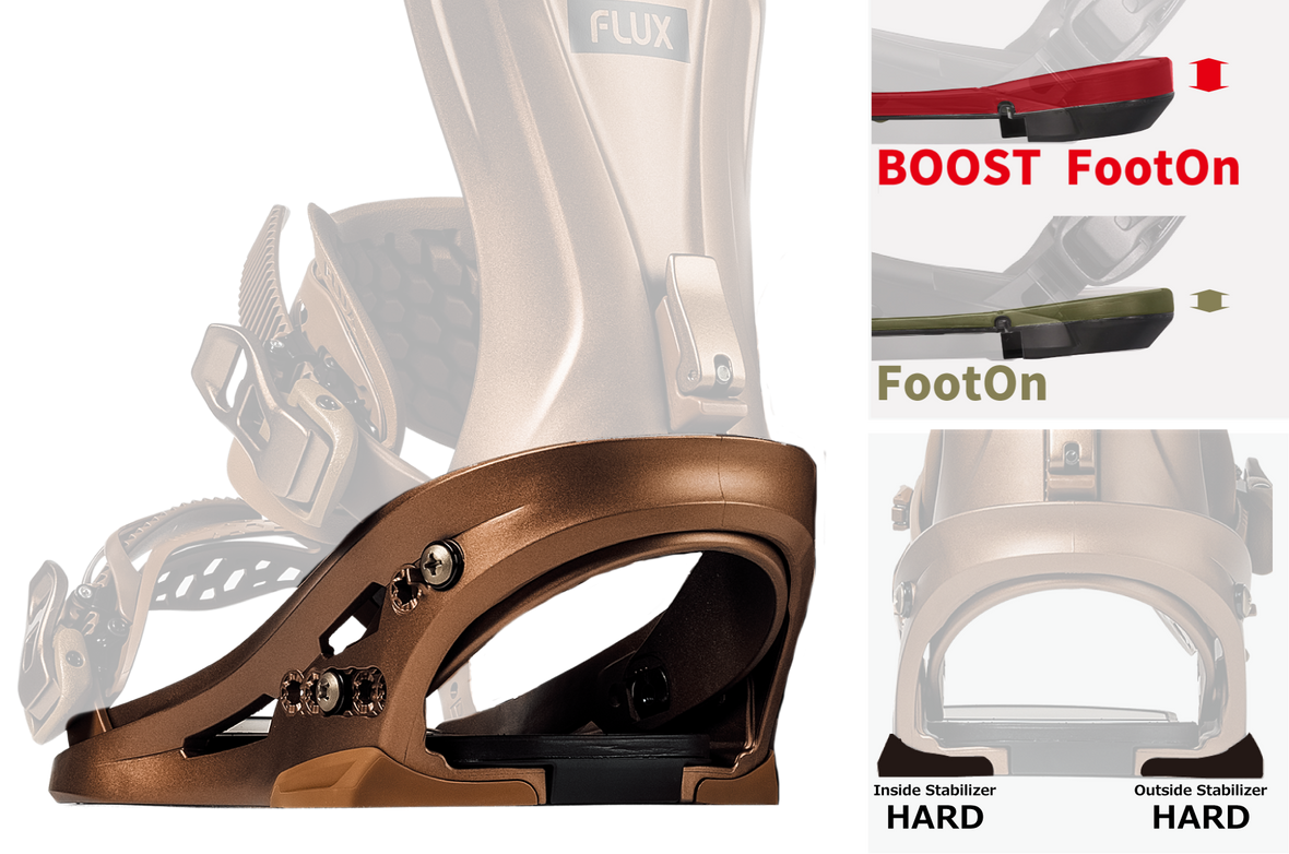 カーボンで強化された取付ディスクと4mm高さをあげたBoost FootOn+はさらにクイックな切り返しと、安定したエッジングを可能にしました。