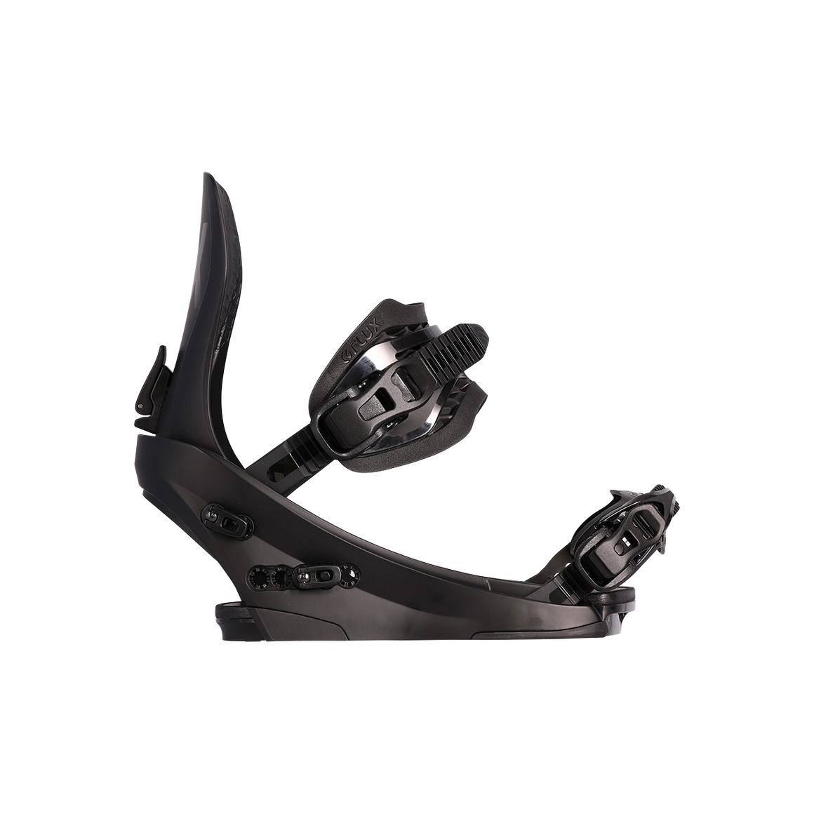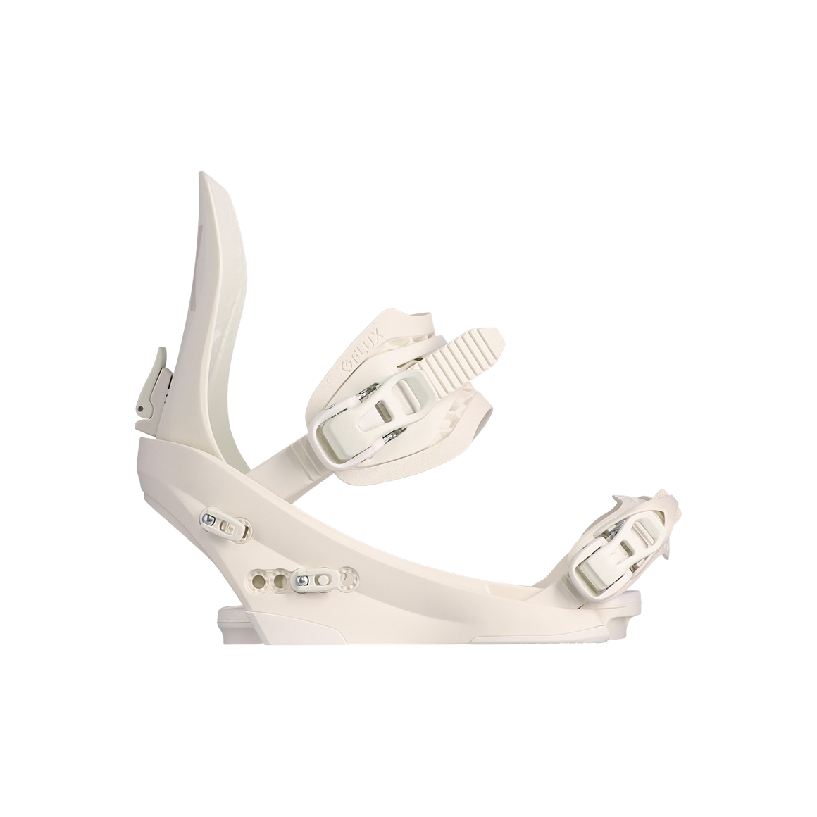 まるで水牛の角のような2本の柱が特徴。フラットなハイバックの面を両サイドからサポート。今期は2本の柱の厚みを増し、よりダイレクトにボードに力を伝える形状となった。