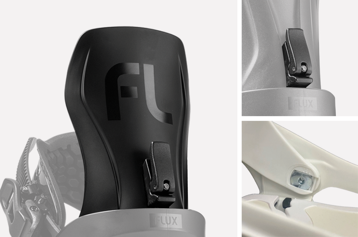 ヒールカップとハイバックの間にストラップベルトを取りつけることで、360°方向からブーツ包み込むシステム。これにより自然なホールド感と圧力の均一化を実現。