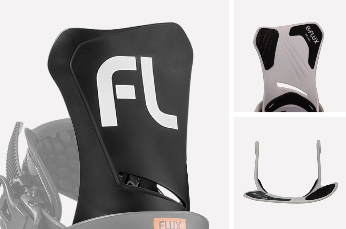 ヒールカップとハイバックの間にストラップベルトを取りつけることで、360°方向からブーツ包み込むシステム。これにより自然なホールド感と圧力の均一化を実現。