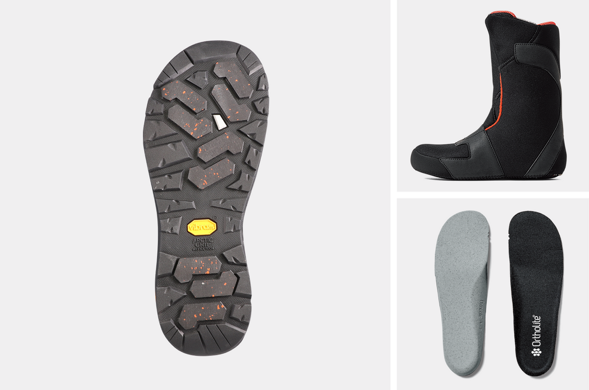 イタリアの世界的なソールメーカーVibramを採用。凍った路面だけでなく雪上でも優れたグリップ性を発揮するARTIC GRIP採用でバックカントリーでの行動を容易にする。