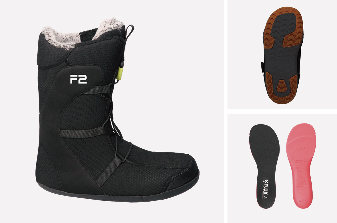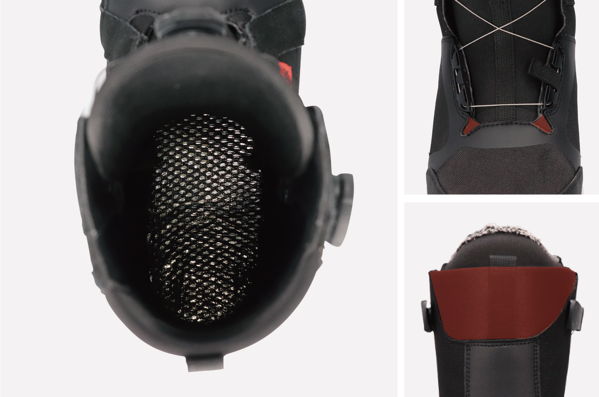 足への一体感を高めるレースクローザーとフィット性と断熱効果の高いPEFフォームとAysmカット採用したコンフォートインナー。